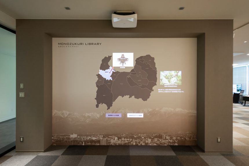 富山県ものづくり研究開発センター ものづくりライブラリー 壁⾯プロジェクションマッピング