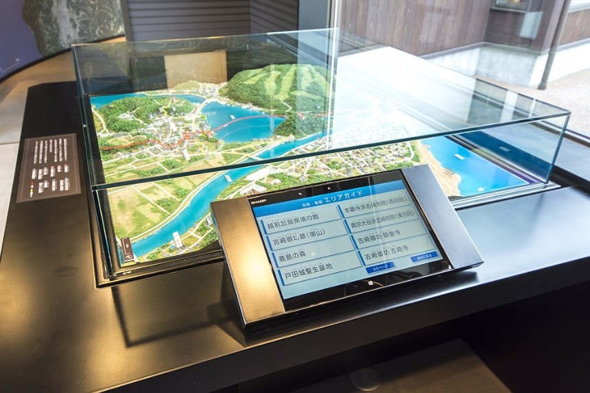館内では、浄⼟真宗中興の祖といわれる蓮如上⼈や、その布教活動の拠点となった吉崎御坊、⼀向⼀揆などについて、パネルや映像で紹介するとともに、両市の観光情報などもタブレット端末等で紹介しています。