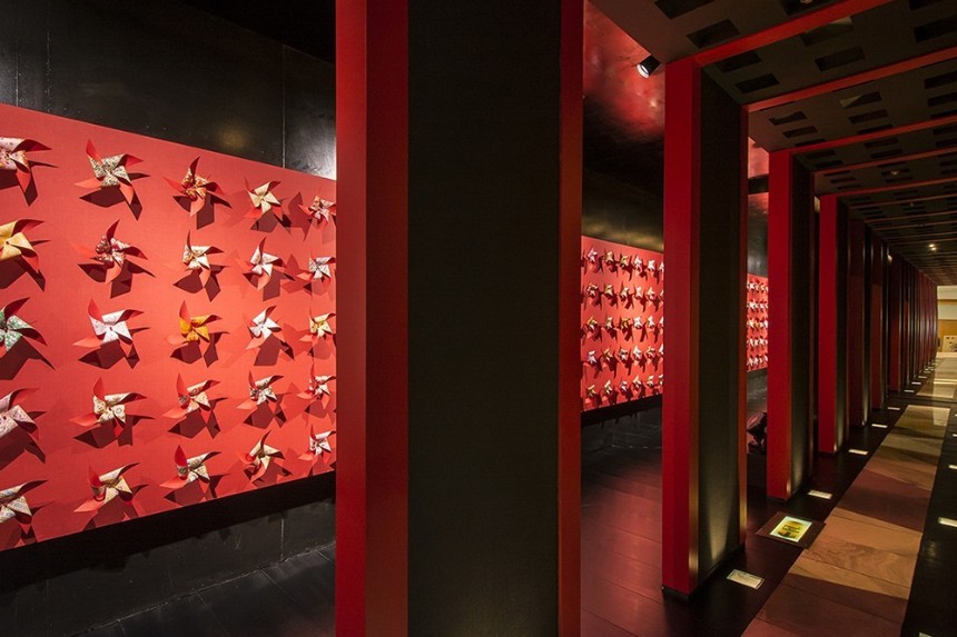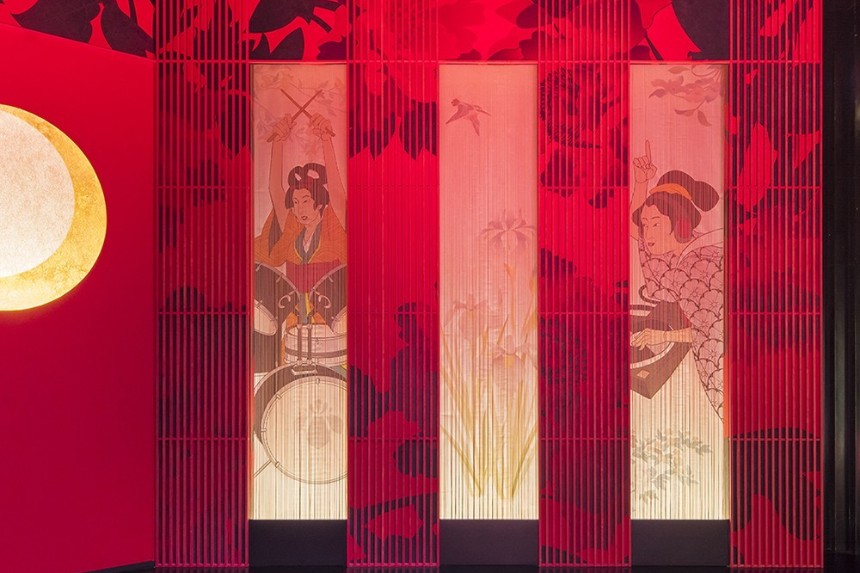 『温泉エンターテイメント 世界から⾒たニッポン〜ネオ・加賀ネスク〜』というテーマを掲げ、アプローチの期待感〜ステージの⾼揚感の醸成を⽬指した。外国⼈が感じ取る⽇本的情趣であり、⽇本⼈は懐かしさを感じ、どこかほっとする⽇本特有の⽂化をモチーフに加賀・⼭代温泉 瑠璃光ならではの「温泉エンターテイメント」空間を楽しく華やかに演出し、来館者(来場者)に⾮⽇常空間・時間の提供を⽬指している。