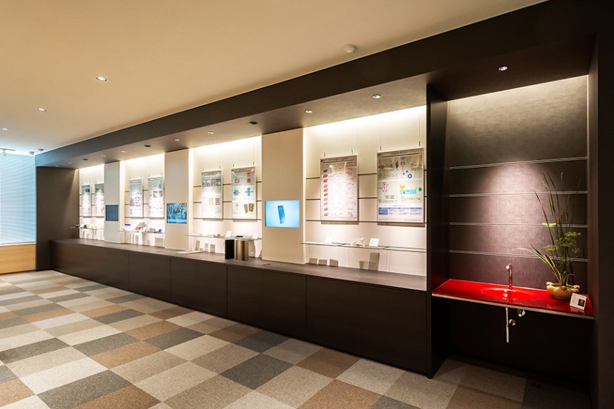 当社は、プロポーザルから受託し、展⽰空間のデザイン・設計・施⼯に加え、建築共⽤部のデザイン監修も⼿掛けた。