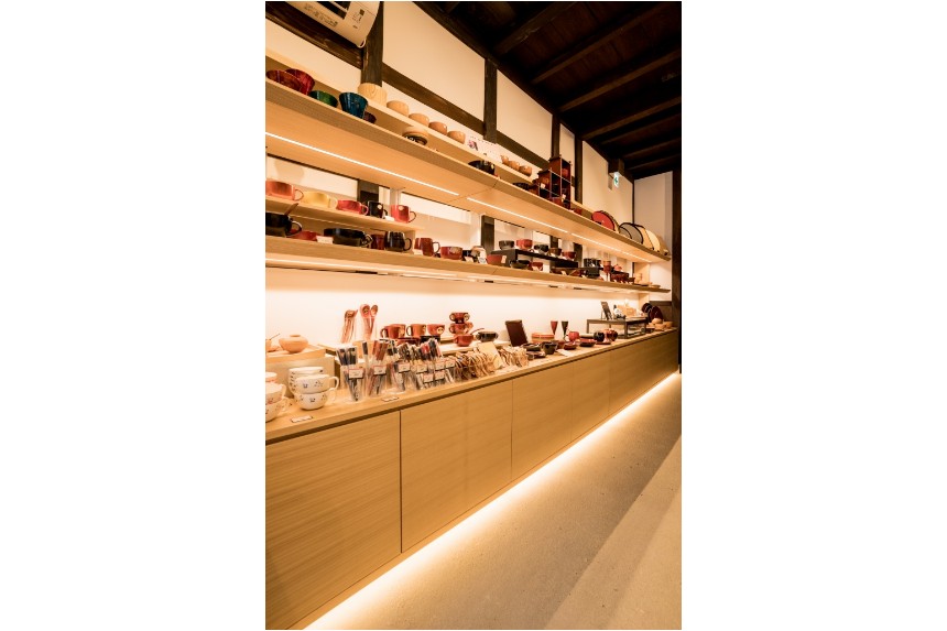 創作漆器わこうの新事務所兼店舗の1階店舗部分の什器・入口のれんのデザイン・設計・施工および照明計画を担当。