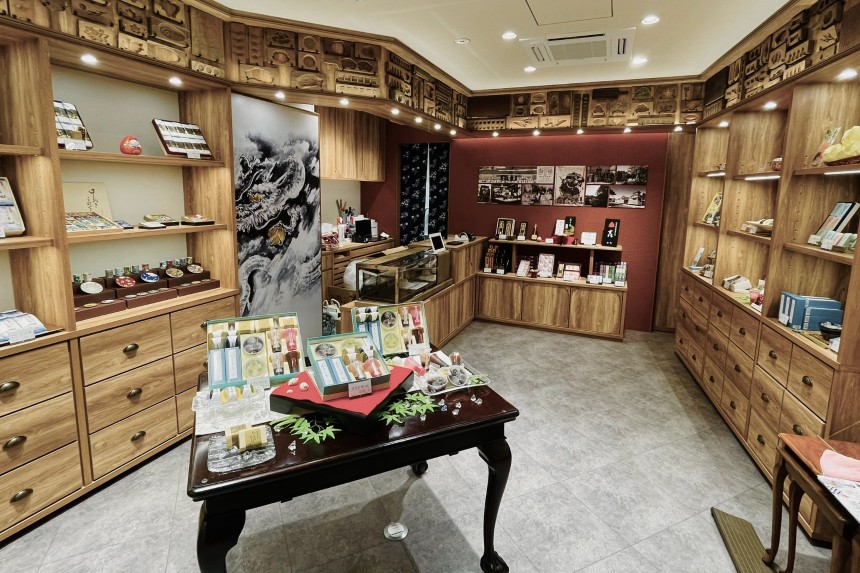 老舗に伝わる江戸時代から現代までの菓子木型や、1964年東京五輪の際にあつらえた焼印など合わせて100点以上を展示した、美術館のような店内となっています。