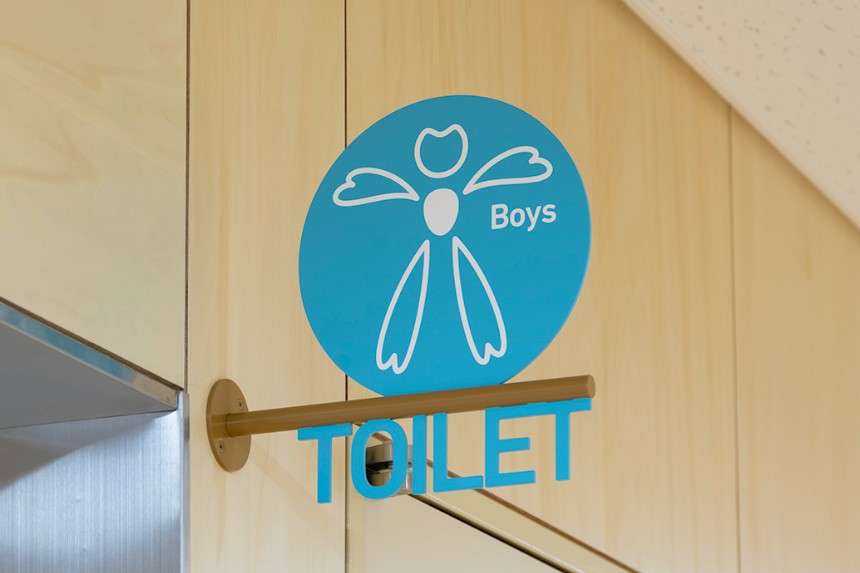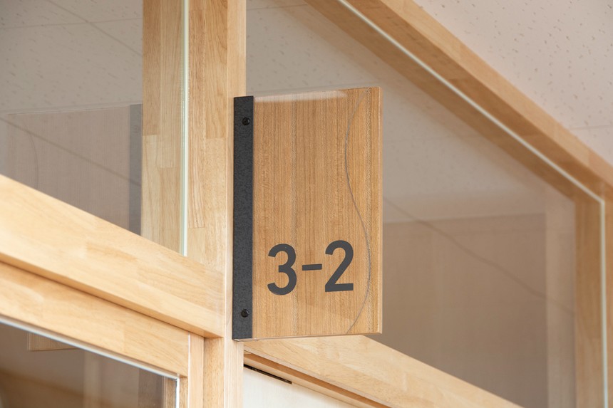 また、サインの随所に犀川の流れを感じるS字曲線をあしらい、統一感のあるデザインとしております。