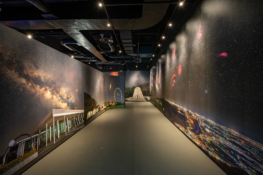 AR技術でいん石が落下する様子を分かりやすくCG映像で再現したほか「新星景写真」によるダイナミックなグラフィックウォール、イラストを散りばめたグラフィックなど、子どもから大人まで楽しく学べる空間となりました。