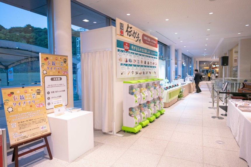 屋外にフォトスポット的モニュメントを製作設置、伝統工芸品の作品展会場、販売ブース・実演/体験ブース、ガチャガチャなど、配置計画からグラフィックの展開、設営業務を請け負わせていただきました。
