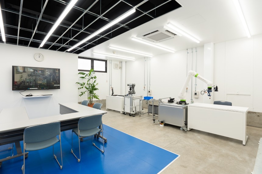 2025年6⽉に開設された、⼭崎電機様のショールーム「ロボラボ」は、ロボットに触れて理解し、⽣産現場の省⼒化・合理化をお客様と共に実現することで、価値を創出し続ける進化型施設です。