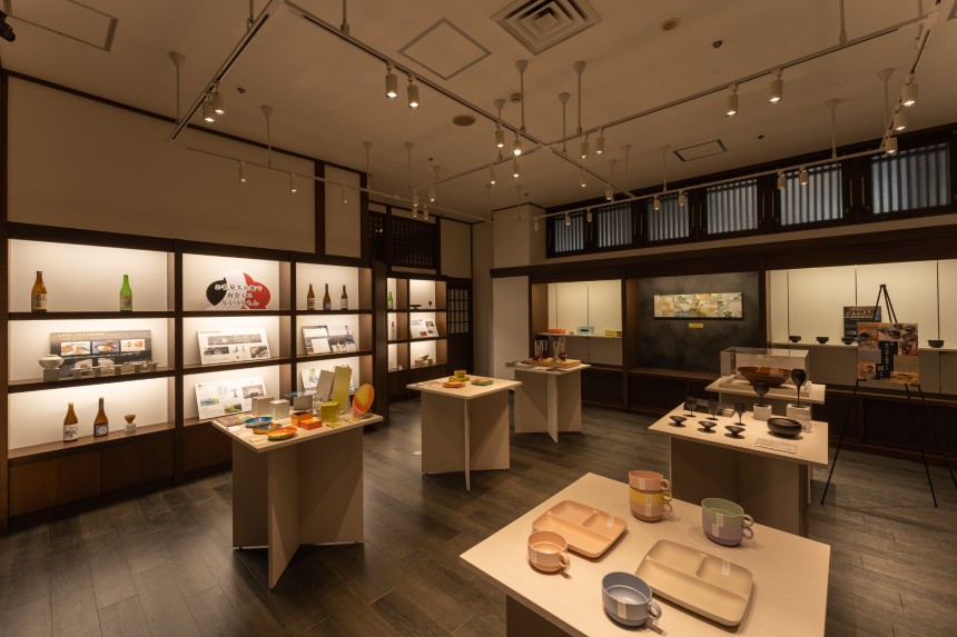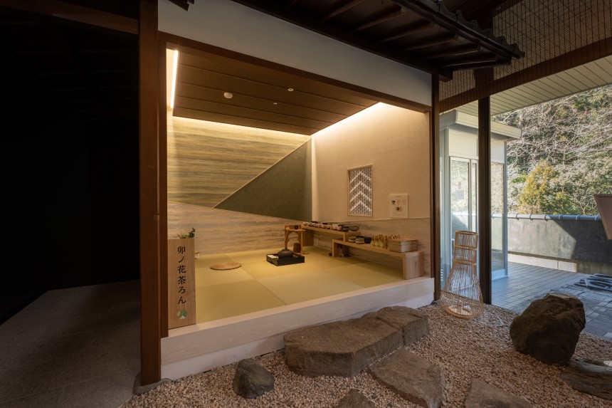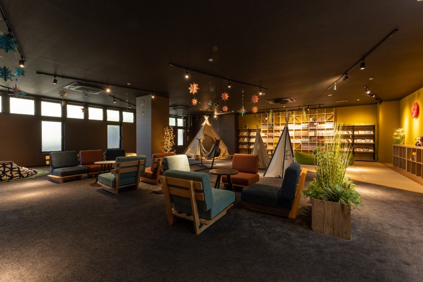 ロビースペースは「多彩なコンテンツとお洒落でモダンな雰囲気が様々なシーンを楽しく演出するおもてなしと癒し空間の創出」をコンセプトとし、元々あった茶室や煎餅焼き体験コーナーをモダンな雰囲気に改修、売店をギャラリーへ変化させるなど、数多くの印象に残る体験ができる空間になっています。