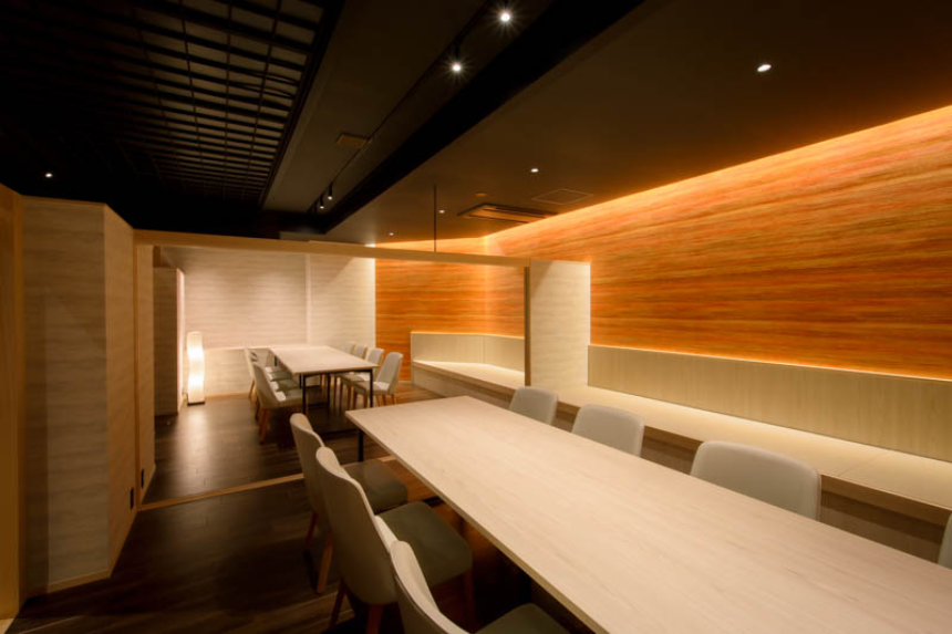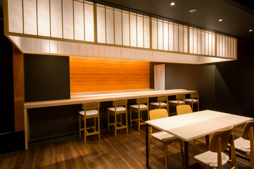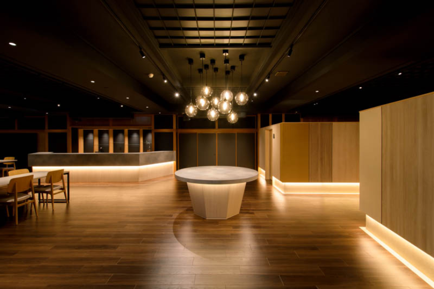 富⼭県が誇る宇奈⽉温泉。開業98年の⽼舗、桃源様の⾷事処改修のデザイン・施⼯のお⼿伝いをさせていただきました。withコロナ時代に向けて個室を13室⽤意したプランとなっています。加えて、寿司カウンターを⽤意し、北陸の海の幸をライブ感もって楽しんでいただけるような構成となっています。