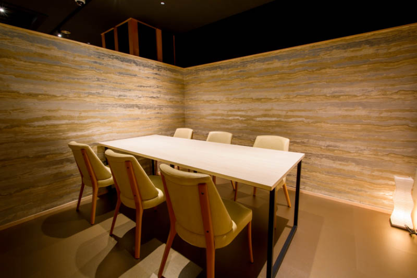 これまで畳が敷かれ純和⾵な⼤宴会場だったところを、「ピーノバンプ」と新たに名付けられ、落ち着いた和モダンな雰囲気の⾷事処となって⽣まれ変わりました。メリハリをつけるため、「必要なところに必要な光」を意識した、お客様にとっても⼼地よい空間と共にスタッフにとっての機能性を考えた照明計画をしました。また、通理中央には、「桃源」の名前から「桃」をイメージした個室ブースは、象徴的でアクセントとなっています。